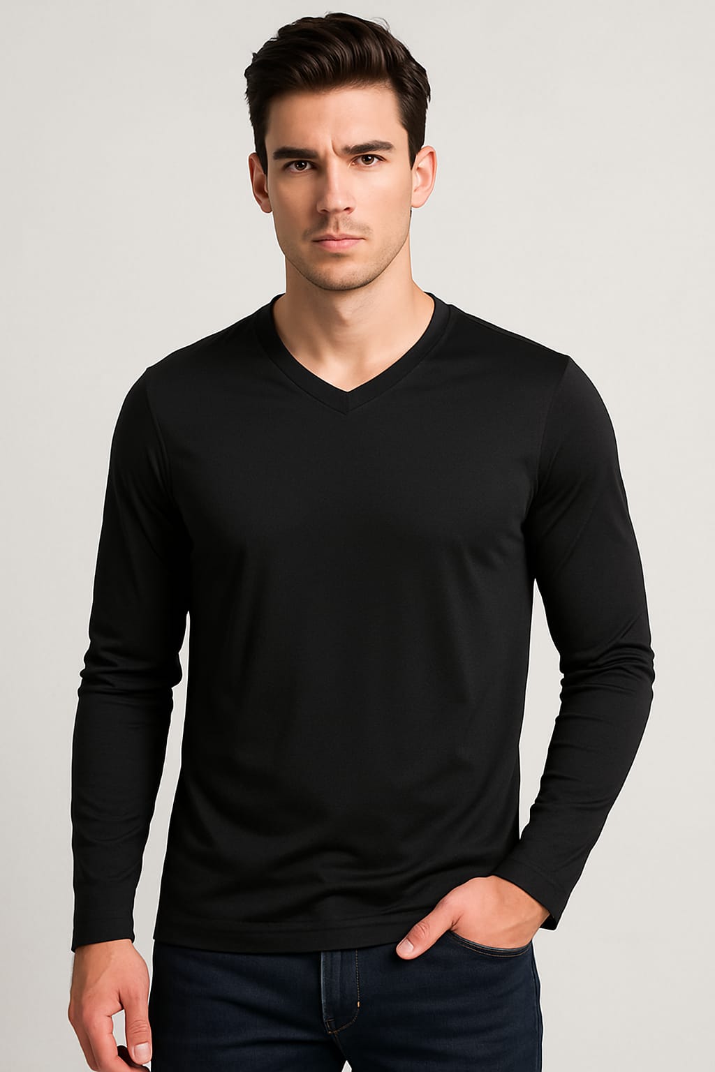 צווארון V צבע שחור