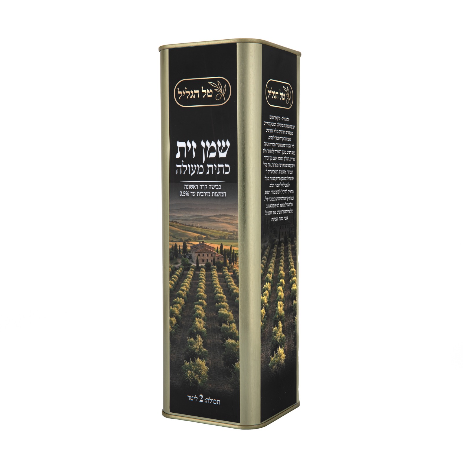 שמן זית כתית מעולה, המופק מזיתים מובחרים הגדלים בגליל ונכבשים בכבישה קרה סמוך למסיק.
