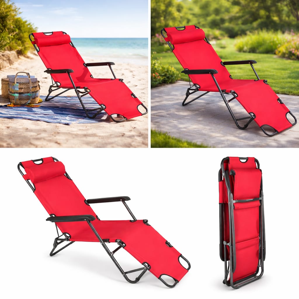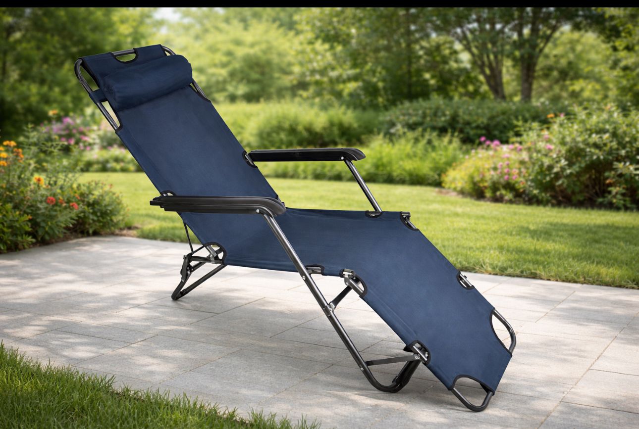 מיטת שיזוף מתקפלת בעיצוב ארגונומי, המאפשרת ישיבה נינוחה או שכיבה מלאה עד 180° – אידיאלי לשיזוף, מנוחה, קריאה ואפילו שינה קלה.